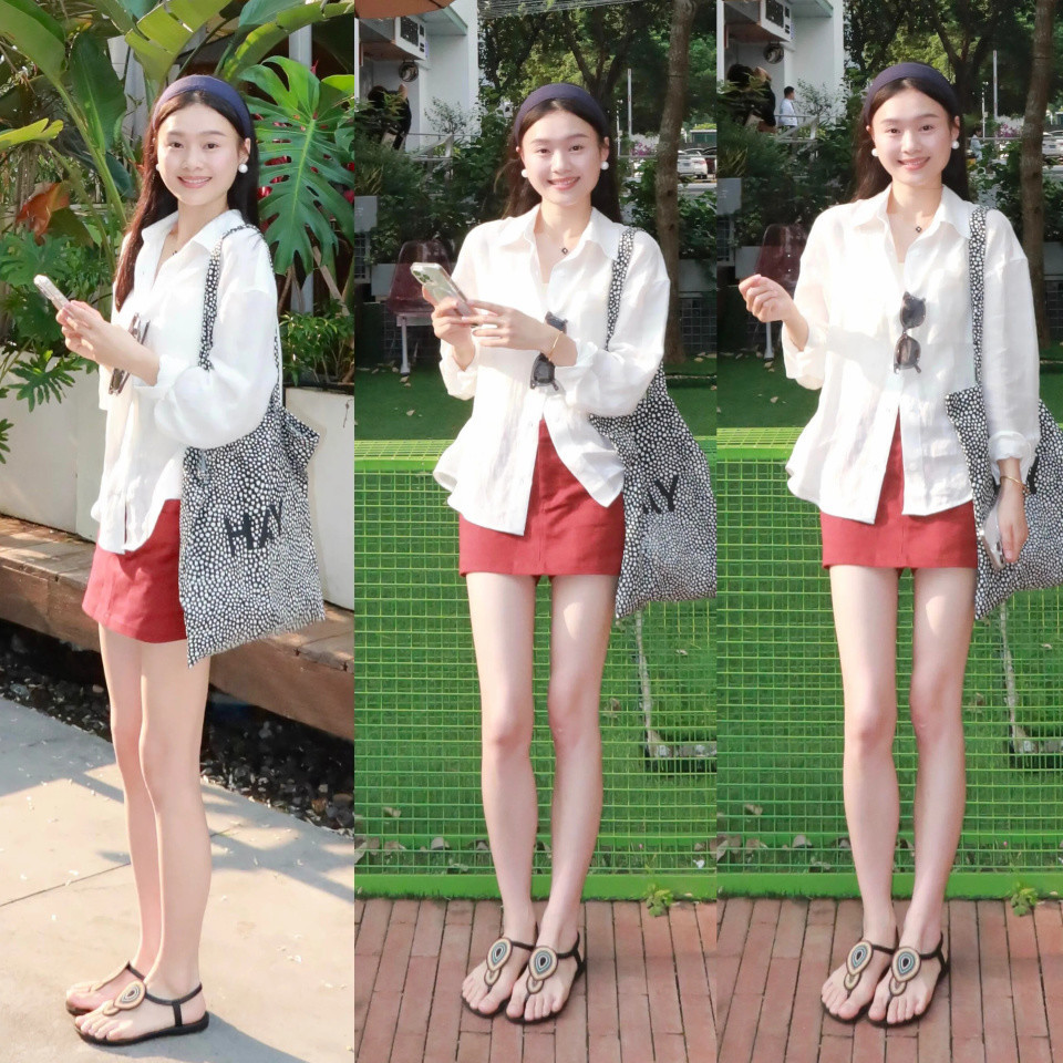 o ③:白衬衫+红色短裙,朝气本旨